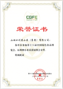 第十八屆中國綠色食品博覽會于8月18日至21日于內蒙古包頭市國際會展中心舉辦,本次博覽會以“綠色理念、綠色生產、綠色消費”為主題,旨在“展示成果、促進貿易、推動發展”。山西沁州黃小米(集團)有限公司的“沁州”牌沁州黃小米獲得綠博會金獎。
